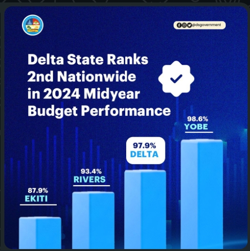 In another development, Delta State under Oborevwori’s watch ranked second in Nigeria in budget implementation. In the figures published by AGORA POLICY, A think tank evaluating group, Delta State scored 97.9% second to Yobe State only which scored 98.6%.
