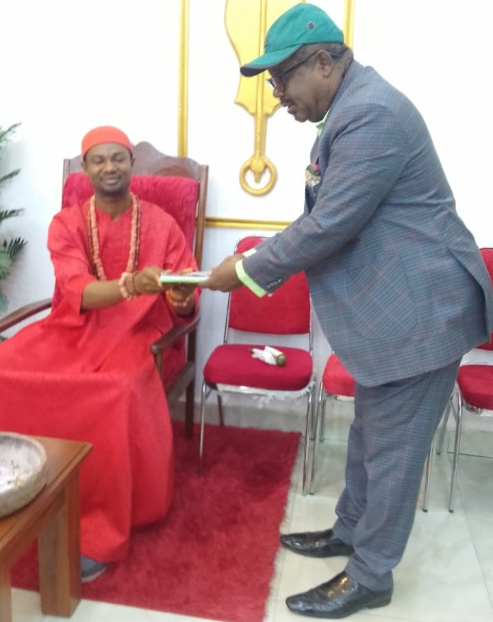 Obi of Issele-Uku, Principal St. Pius X Grammar School, Onicha-Ugbo Receive ECCCGEF Economic Trees and Green Energy Publications