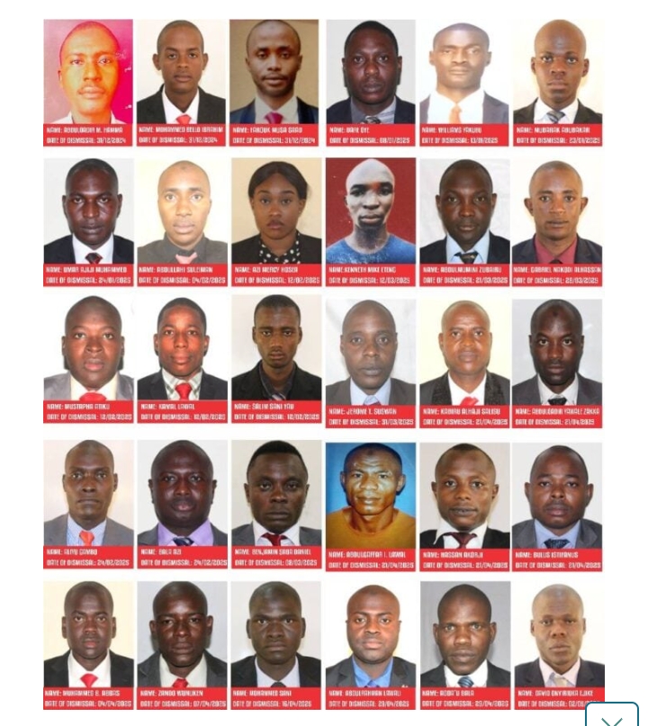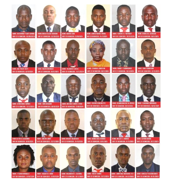 The DSS published the names and pictures of the 115 dismissed personnel on its website.